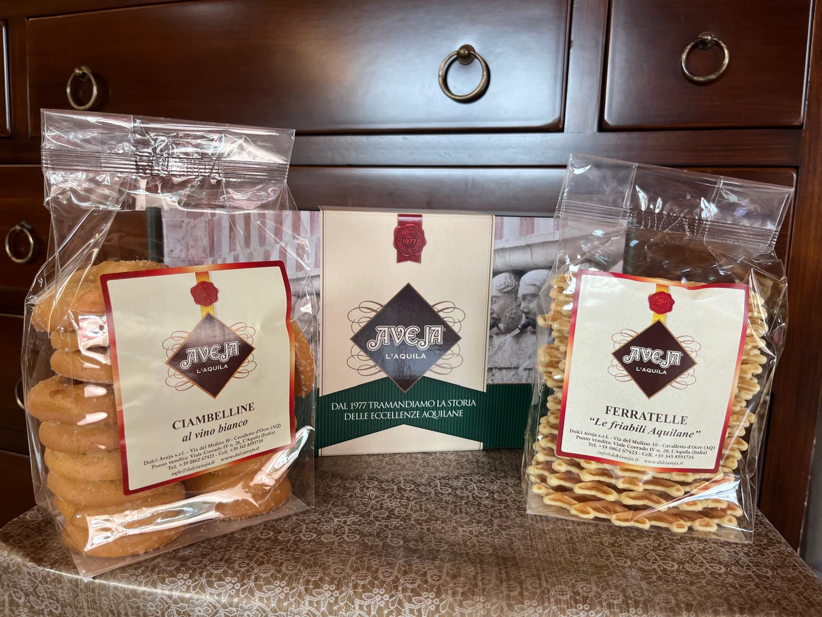 Il loro punto forte è sicuramente il contenuto: tutti i nostri pacchi regalo sono con prodotti Dolci Aveja da noi creati o da prodotti di Aziende artigianali abruzzesi da noi scelte, come lo Zafferano di Navelli, il miele Abruzzese, le marmellate di ingredienti selezionati e quanto più possibile km 0.