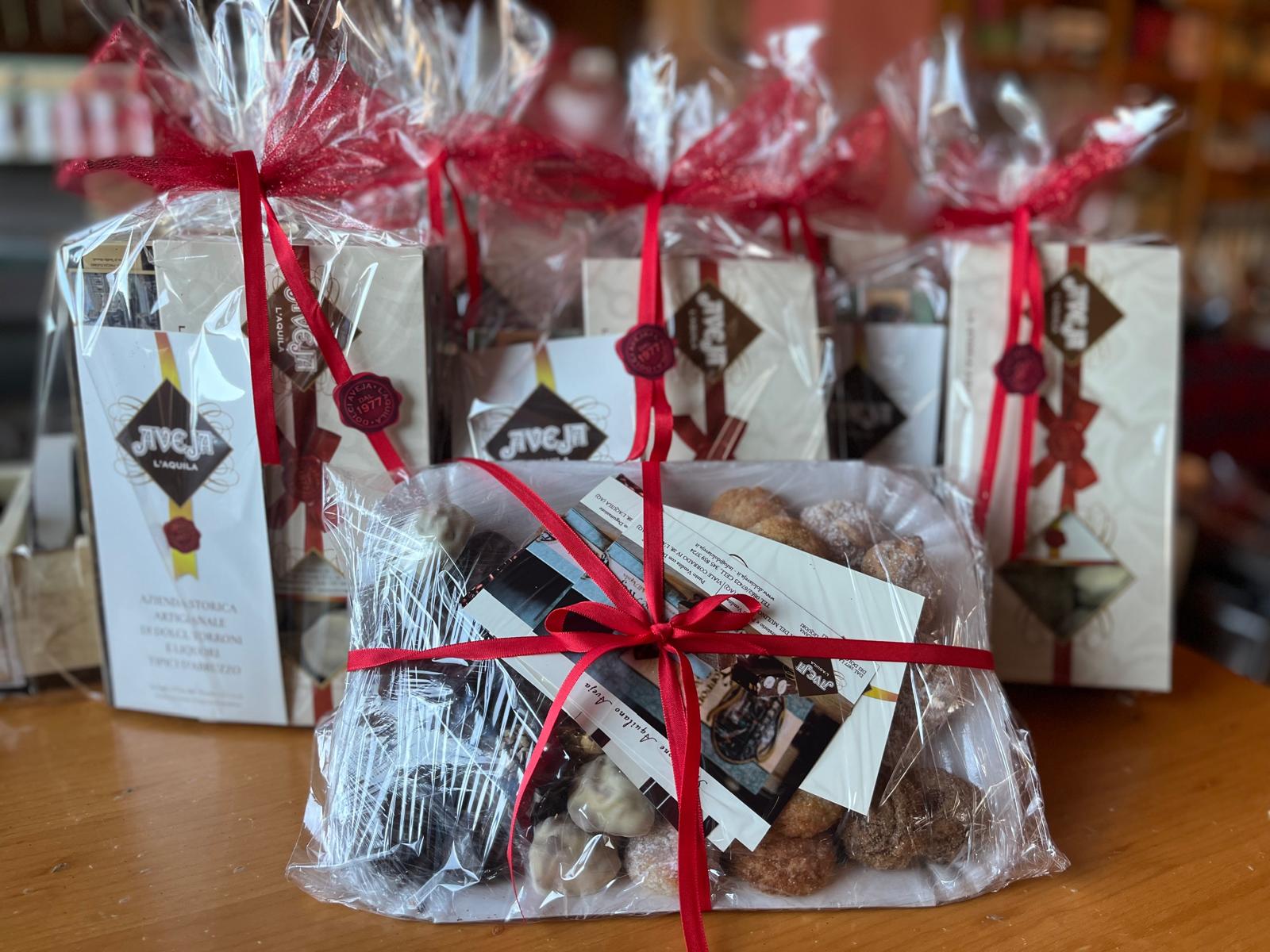 Il loro punto forte è sicuramente il contenuto: tutti i nostri pacchi regalo sono con prodotti Dolci Aveja da noi creati o da prodotti di Aziende artigianali abruzzesi da noi scelte, come lo Zafferano di Navelli, il miele Abruzzese, le marmellate di ingredienti selezionati e quanto più possibile km 0.
